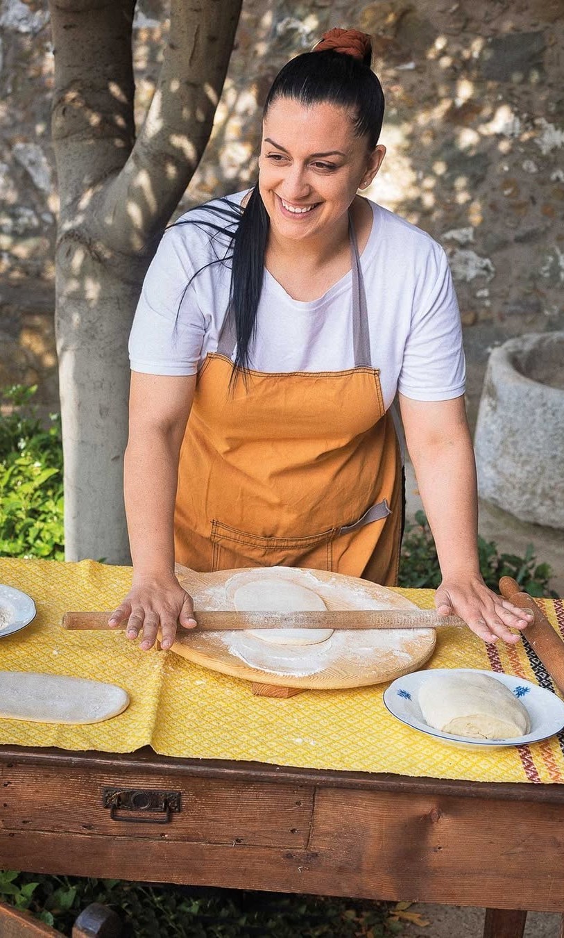 «Σπούδασα Management στο Πανεπιστήμιο Πελοποννήσου στη Σπάρτη, αλλά σαν φοιτήτρια ήμουν δίπλα στη γιαγιά μου για να φτιάχνουμε πίτες. Μόλις τελείωσα, πήρα το πτυχίο, και ήρθα στους δικούς μου. Καθώς η νονά μου είχε ένα καφενείο εδώ στις Μέλαμπες, τότε μου πρότειναν να φτιάξω πίτες μαζί με τις ρακές που έδιναν στον κόσμο. Και στην πορεία, έλεγαν ότι: «Τις φτιάχνει η Αργυρούλα». Εκεί σκέφτηκα, γιατί να μην το συνδυάσω; Είπα να βοηθάω για τα μπεμπιλίνα του μικρού και έτσι ξεκίνησα. Πριν 3 χρόνια (2023) βρήκα τον πρώτο μου πελάτη. Μέσα στα αλεύρια, μαζί με το μωρό! Χρόνο με το χρόνο, οι ανάγκες αυξάνονταν, οπότε έγινε το εργαστήρι μαζί με το σύζυγό μου, Μανώλη. Έτσι και λόγω μιας κουβέντας που όλο μου την έλεγε συνέχεια ο πατέρας μου πριν φύγει από τη ζωή: «Μάθε Τέχνη κι Άστηνε». Έτσι, ταίριαξαν όλα αυτά».